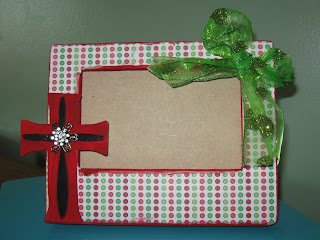 Thanks to J who made me go to craft night at Willowbrook. I seriously needed the distraction, after the rotten day I had. It was really easy. Paint the $1 Michaels frame. Modgepodge and cover with scrapbooking paper. She burnished the edges with a drimmel. Paint embellishments. Hot glue it all together.